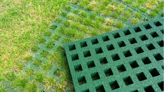 A great extra benefit is that grass grows through the tiles. That means they gradually become almost invisible in your lawn.