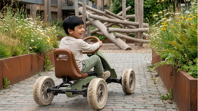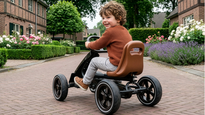 A go-kart is also the kind of toy children keep inventing new games with. One moment they are racing around the garden, the next they are delivering toys or following a course they made themselves. That variety is exactly what makes a first go-kart so much fun. The EXIT Foxy fits that perfectly and gives young children the freedom to play and discover independently.